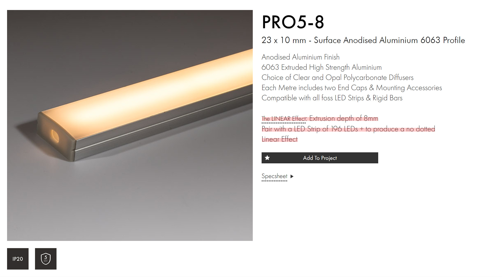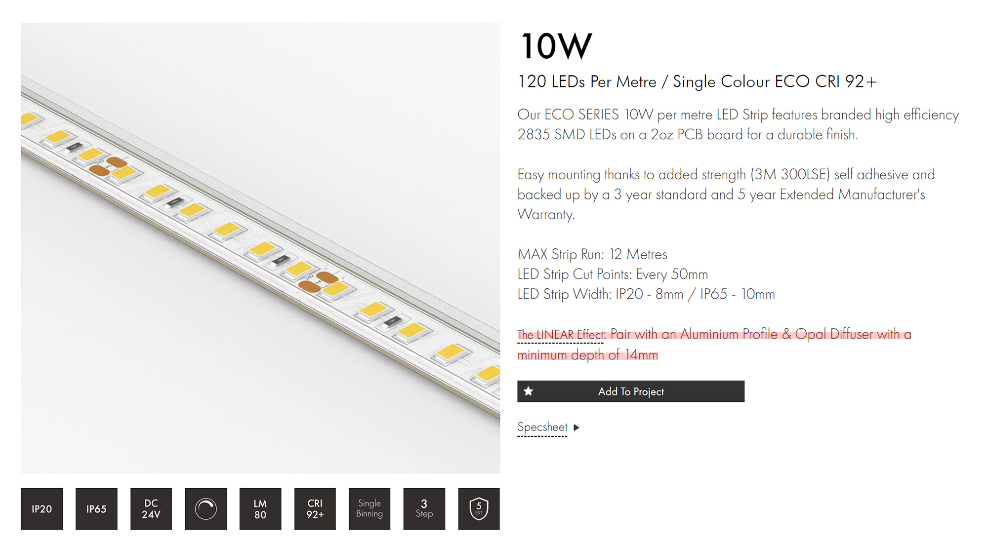 On each LED Strip & Aluminium Profile product page you will find information listed to help guide you in pairing the right products together to achieve a LINEAR Finish.