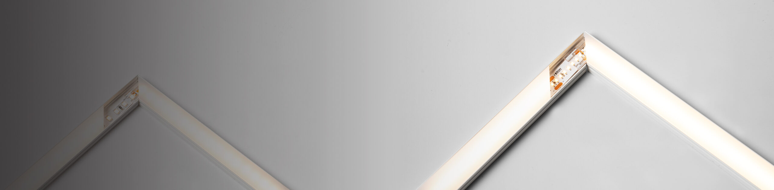 Dotting happens when there is a combination of a low amount of LED chips per metre and a shallow profile. This produces a typically undesirable dotted lighting effect.