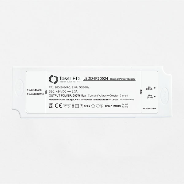 SORTIE Puissance : 100W Tension : 24V Courant : 4.2A ENTREE Plage de tension : 200 - 240VAC Fréquence AC : 47 - 63Hz Facteur de puissance : >0.65 Efficacité : >91% Courant d'appel : 70A Dimensions L162 x l40 x H32mm