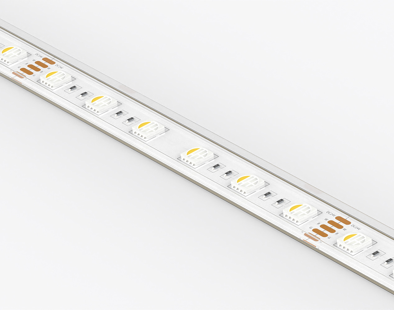 Notre ruban LED de la série RVB + B 20W par mètre est dotée de LEDs SMD à haut rendement (4 en 1) sur une carte PCB de 2 oz pour une finition durable.