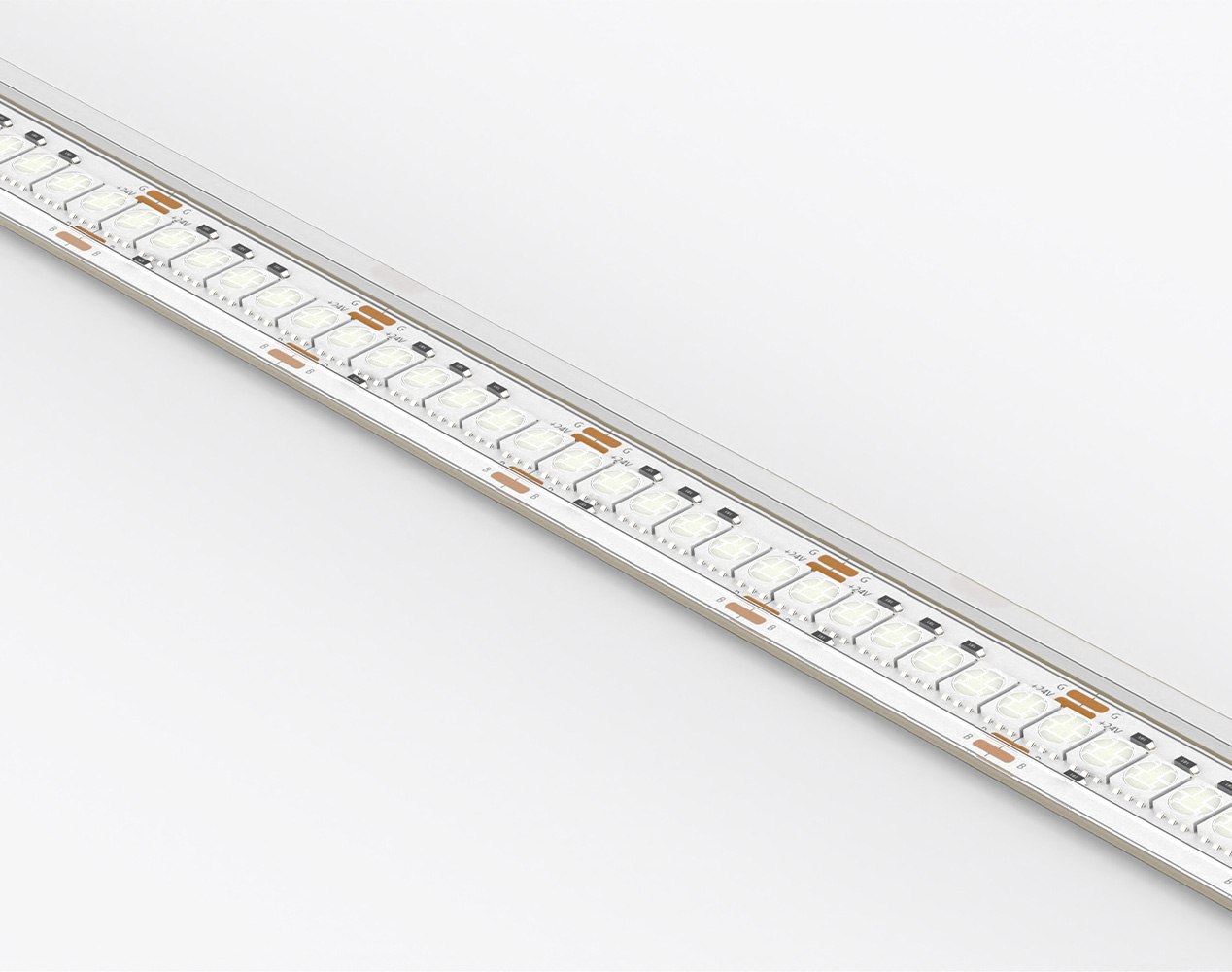 Notre ruban LED de la série haute puissance 24W par mètre comprend des LEDs 5050 SMD de très haute efficacité (3 en 1) sur une carte PCB de 2 oz pour une finition de produit durable.